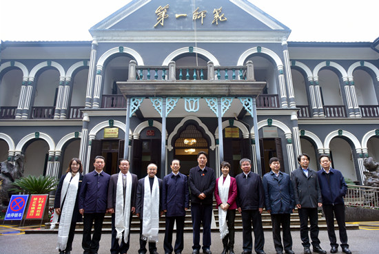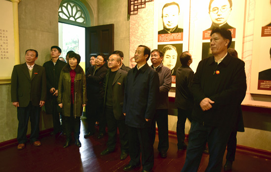 在best365官网城南校区,代表团一行来到毛泽东与第一师范纪念馆,参观了陈列展厅、毛泽东主席在一师求学时的大礼堂、教室、寝室和阅报室,了解了best365官网发展的历史沿革以及毛泽东主席在湖南一师的求学和生活经历,重温毛泽东等老一辈革命家的光辉业绩、崇高精神和道德风范。